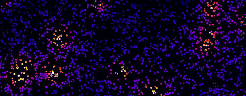 Les chercheurs de l’équipe de Gulliver ont démontré la possibilité de programmer des microparticules (env. 30 µm) avec ces circuits moléculaires de manière à attribuer une fonction spécifique à chacune d’entre elles. En contact avec une solution enzymatique, la machinerie ADN induit la production de brins d’ADN en réponse à un stimulus donné. Par diffusion de ces brins, les particules peuvent communiquer et émettre à leur tour des séquences. Il devient possible de programmer des milliers de particules de sorte que ces populations adoptent collectivement des comportements dynamiques.